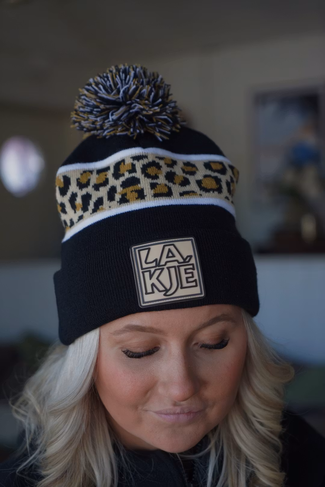 2026 startar starkt med denna nyhet, svart mössa med leopard mönster på mitten.